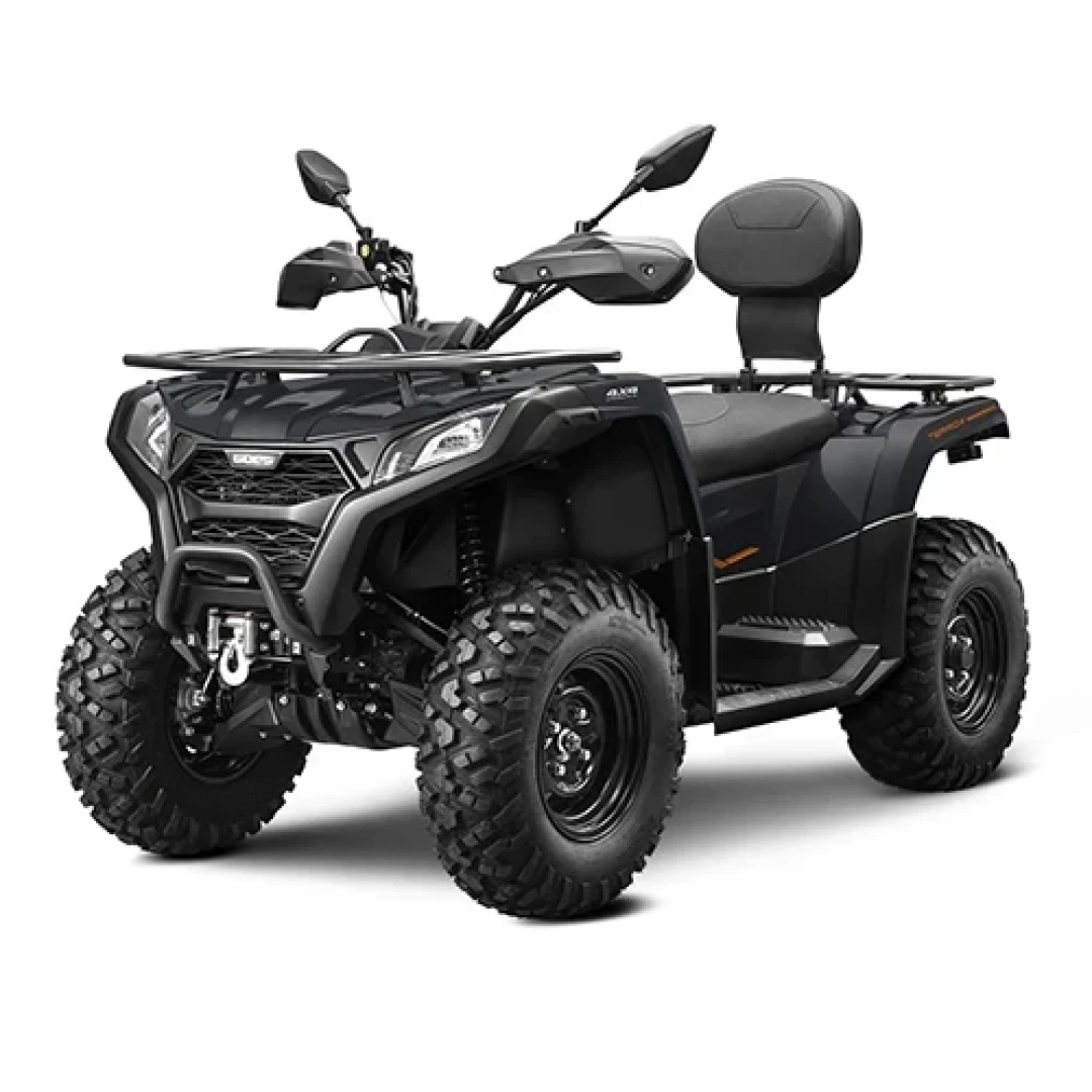 | SPECIFICATII TEHNICE | Caracteristici tehnice: motor monocilindru, 495 cc, 4 timpi, racit cu lichid, SOHC, 4 valve, EFI, 35 CP cutie CVT tractiune selectabila 2WD/4WD suspensie fata independenta, brat dublu tip A suspensie spate independenta, brat dublu tip A frane: frana laterala roata fata + frana axa centrala roata spate + parcare axa centrala amortizoare fata/spate pe ulei, cu arc spiralat pornire electrica viteza maxima: 60 km/ora capacitate incarcare 228 kg rezervor 14 L carlig 2 inch port USB anvelope 25 inch bumpere fata si spate compartiment spate pentru depozitarea uneltelor garda la sol 250 mm inaltime sa 530 mm culori: Ghost Grey, Pearl Injected Black. Culoarea Gri costa 100 Euro (TVA inclus) Acest vehicul se conduce cu carnet categoria B. Omologare T3 (inscriere la primarie). |