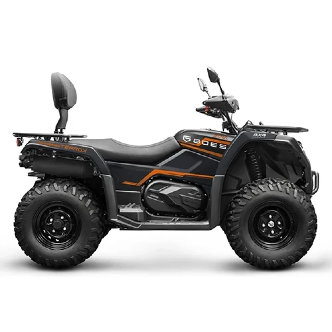 GOES TERROX 500L T3b este un ATV categoria medie, capabil sa duca la indeplinire multiple sarcini utilitare, precum si diverse activitati de agrement. Vine echipat cu un motor monocilindru 495cc, 4 timpi, racit cu lichid, SOHC, pe injectie (EFI) care dezvolta maximum 35 cai putere si este cuplat la o cutie automata CVT. Dispune de tractiune selectabila 2WD/4WD.