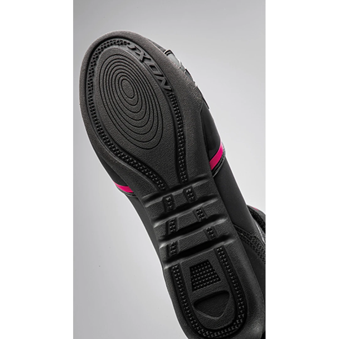 Ghete moto Roadster femei All Season Ixon model Gambler LS culoare: negru/fuchsia (roz) Ghetele Gambler sunt niste ghete foarte usoare, ventilate, care stabilesc un nou standard in ceea ce priveste confortul si perfornamta, la un pret absolut uimitor. Descriere: • culoare: negru/fuchsia (roz); • ghete all season; • tip: Roadster. Caracteristici: • impermeabilitate: nu; • protectie termica: minima. Siguranta: • model certificat CE, level 1, standard omologare: EN 13634:2017 (Level 1111 WR); • intarituri la calcai; • intarituri la degete; • rigiditate transversala, pentru protectie in laterale; • benzi reflectorizante in partea din spate; Specificatii tehnice: • exterior: microfibra; • exterior (partea superioara): 82% polyurethane; 8% piele bovina; 6% polyester; 2% nylon; 2% vinil polychloride; • interior: mesa (mesh) 100% polyester; • talpa: 100% cauciuc; • talpa antialunecare; • talpa antibacteriana. Functionalitate si confort: • talpa antibacteriana + antialunecare; • sistem fixare cu sireturi si banda cu scai; • banda de scai in partea superioara a ghetei, pentru o fixare optima; • usor de incaltat, datorita urechii din spate.