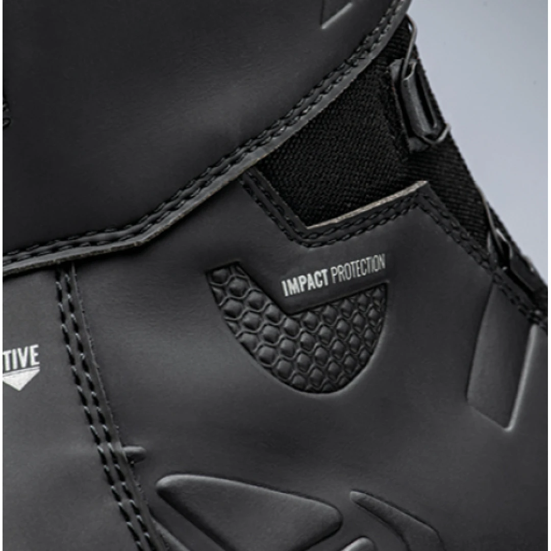 Kassius are intarituri la degete, calcai si laba piciorului, dar aceste intarituri nu restricioneaza flexibilitatea. Ofera un confort ridicat la purtare. Indiferent ca se merge pe vreme uscata sau ploioasa, Kassius este aliatul tau de nadejde, si ofera confort picioarelor tale. Cu proprietatile Waterproof (26000 Schmerber) si insertiile breathable, Kassius sunt ghetele Adventure care garanteaza ca te pastreaza uscat. Ca o regula, ploaia rareori depaseste echivalentul a 2000 Schmerber, dar este estimat ca presiunea exercitata de apa, in timpul rularii cu motocicleta la o viteza de 130km/H poate ajunge pana la 8000 Schmerber.