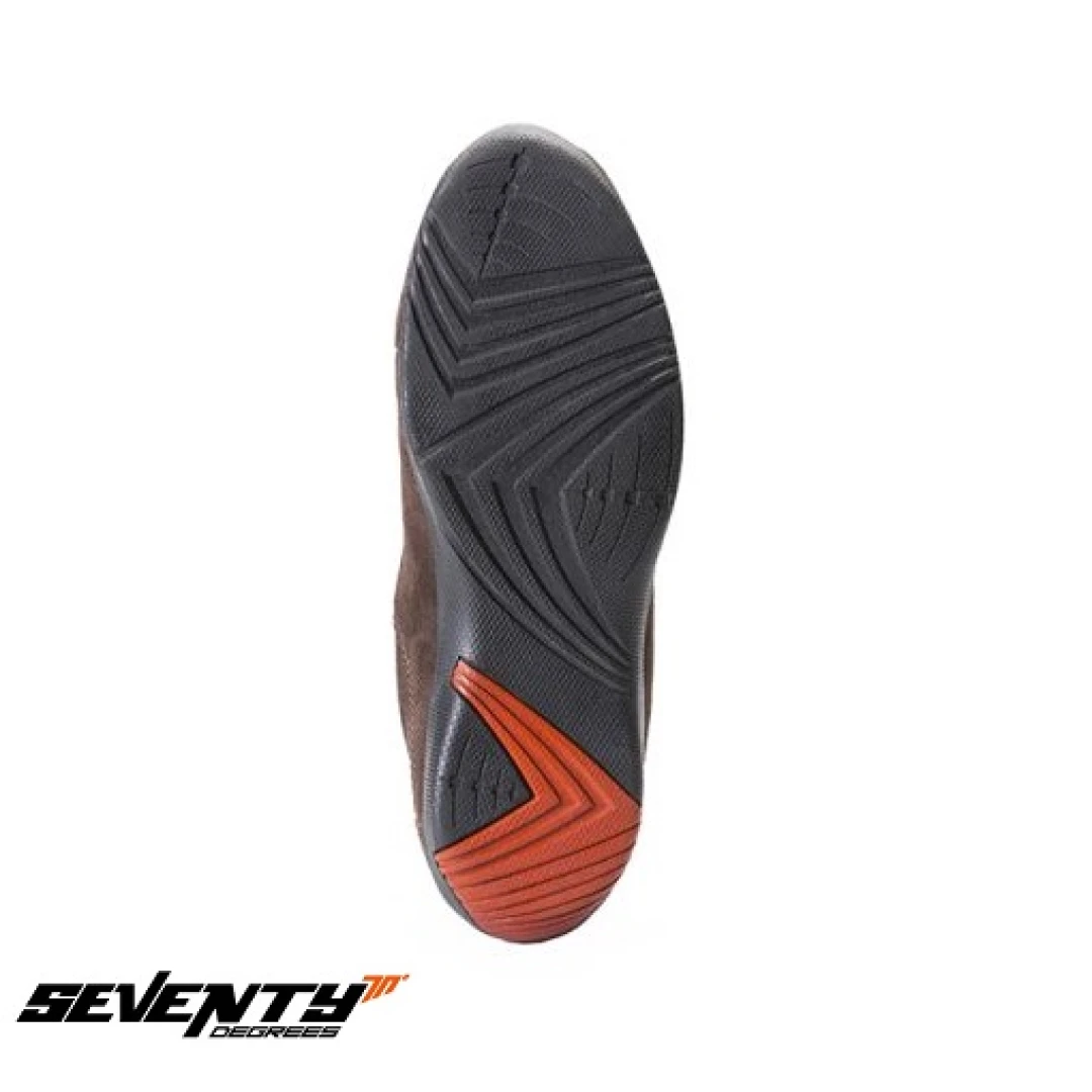 Ghete moto Urban Unisex Seventy model SD-BC8 culoare: maro Caracteristici: • culoare: maro; • marimi disponibile: 39-49; • utilizare: unisex; • ghete omologate: CE Approved: EN 13634:2017; • aspect elegant, stil casual; • ghetele au microperforatii la calcai, pentru o ventilare optima; • 100% "breathable"; • branturile se pot inlocui pentru a asigura un confort sporit; • insertii reflectorizante in partea din spate a incaltamintei, pentru o vizibilitate crescuta; • talpa tratata anti alunecare; talpa in 2 culori; • ghete intarite la calcai si degete; • ghete fabricate din microfibre, ideale pentru utilizare zilnica; • pentru o asigurare fixare mai buna si pentru un confort sporit si o siguranta maxima, ghete se regleaza cu sireturi;