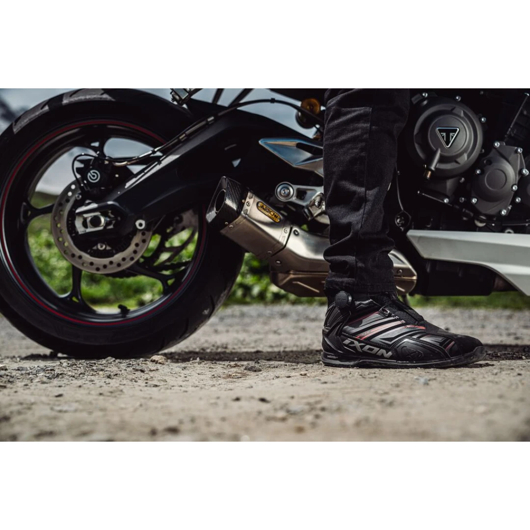 Ghete moto Roadster barbati All Season Ixon model Bull 2 WP ULTRA MS culoare: negru/antracit/rosu (100% waterproof)
