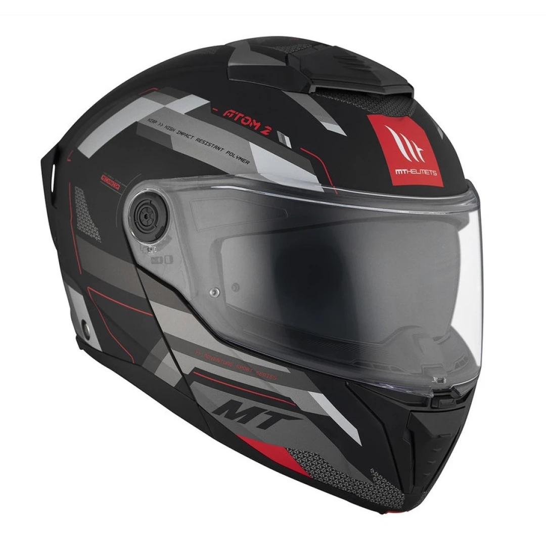 • noul model Atom 2 SV este casca flip-up cu ochelari de soare integrati omologata pe noul standard european de siguranta ECE 22.06;