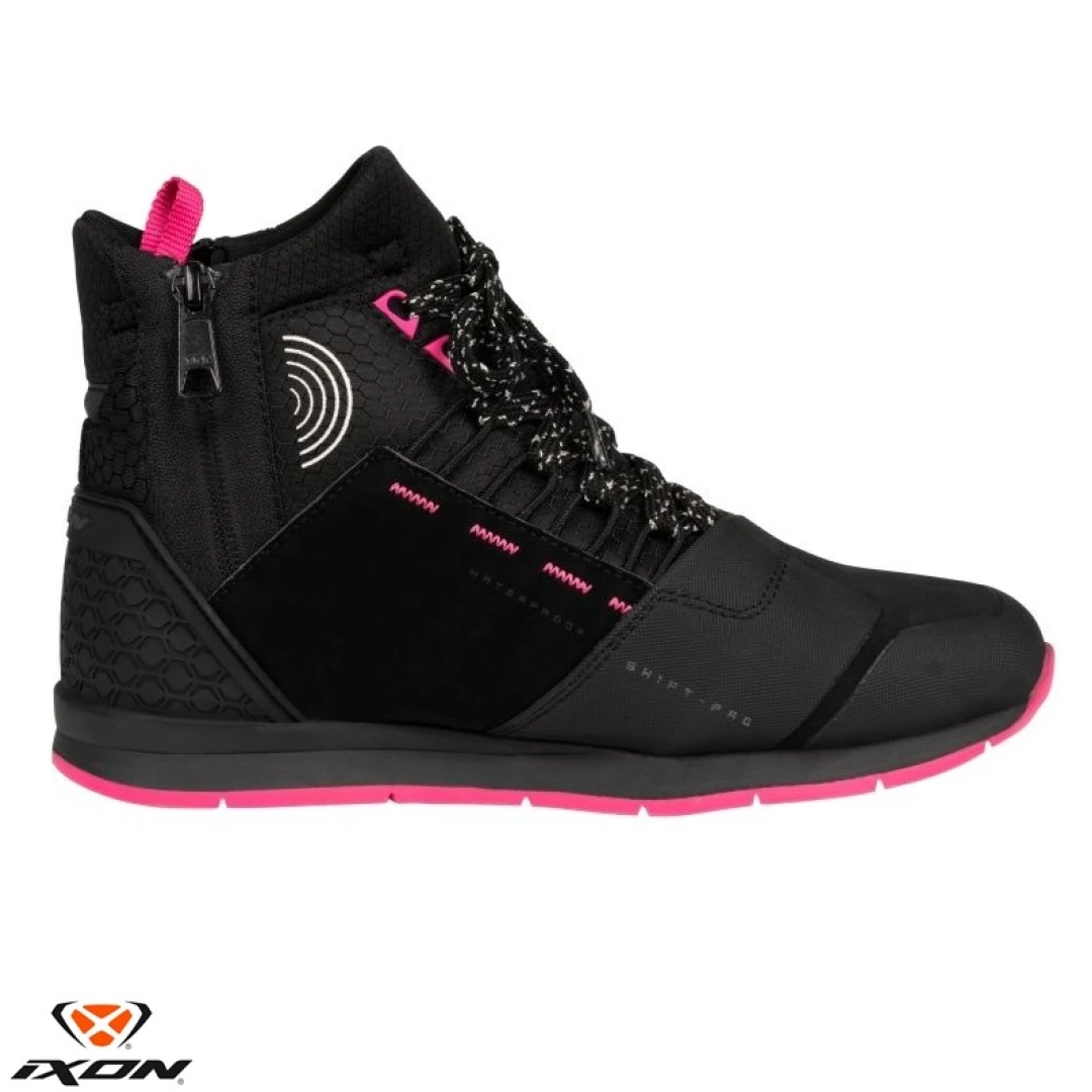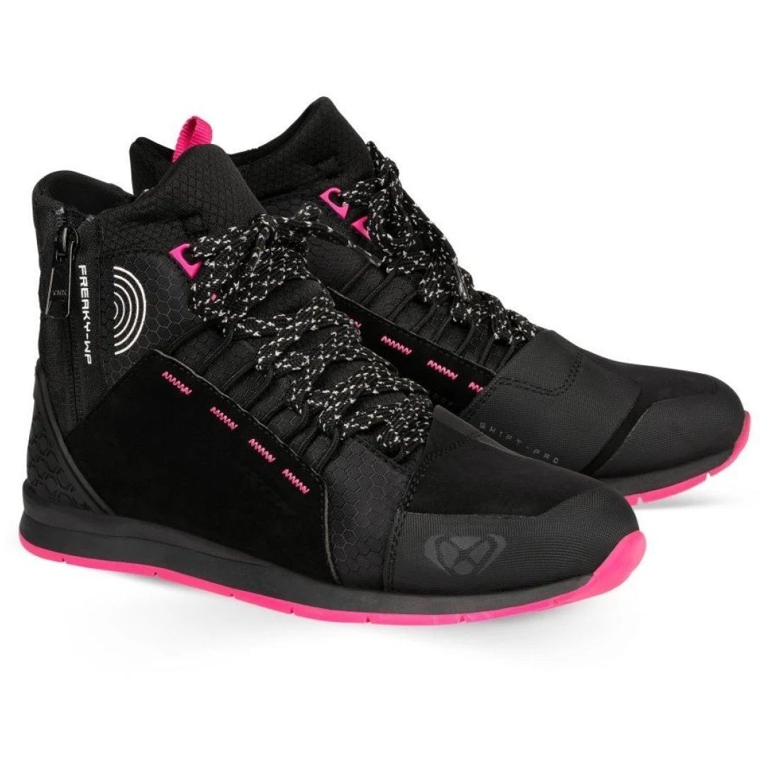 Ghete moto Urban femei All Season Ixon model Freaky WP LS culoare: negru/fuchsia (roz) (100% waterproof)
