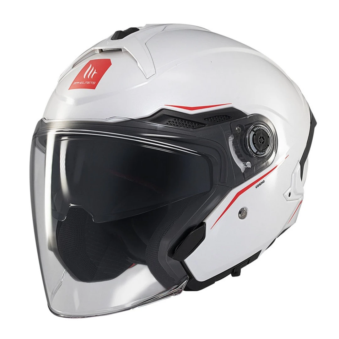 • modelul Cosmo SV incorporeaza ultimele cartacteristici si inovatii ale producatorului MT in materie de casti: sistemul de schimbare foarte rapid al vizierei QVSS, erodinamica optimizata cu sistem nou de ventilare, si 2 tipuri de spoilere.