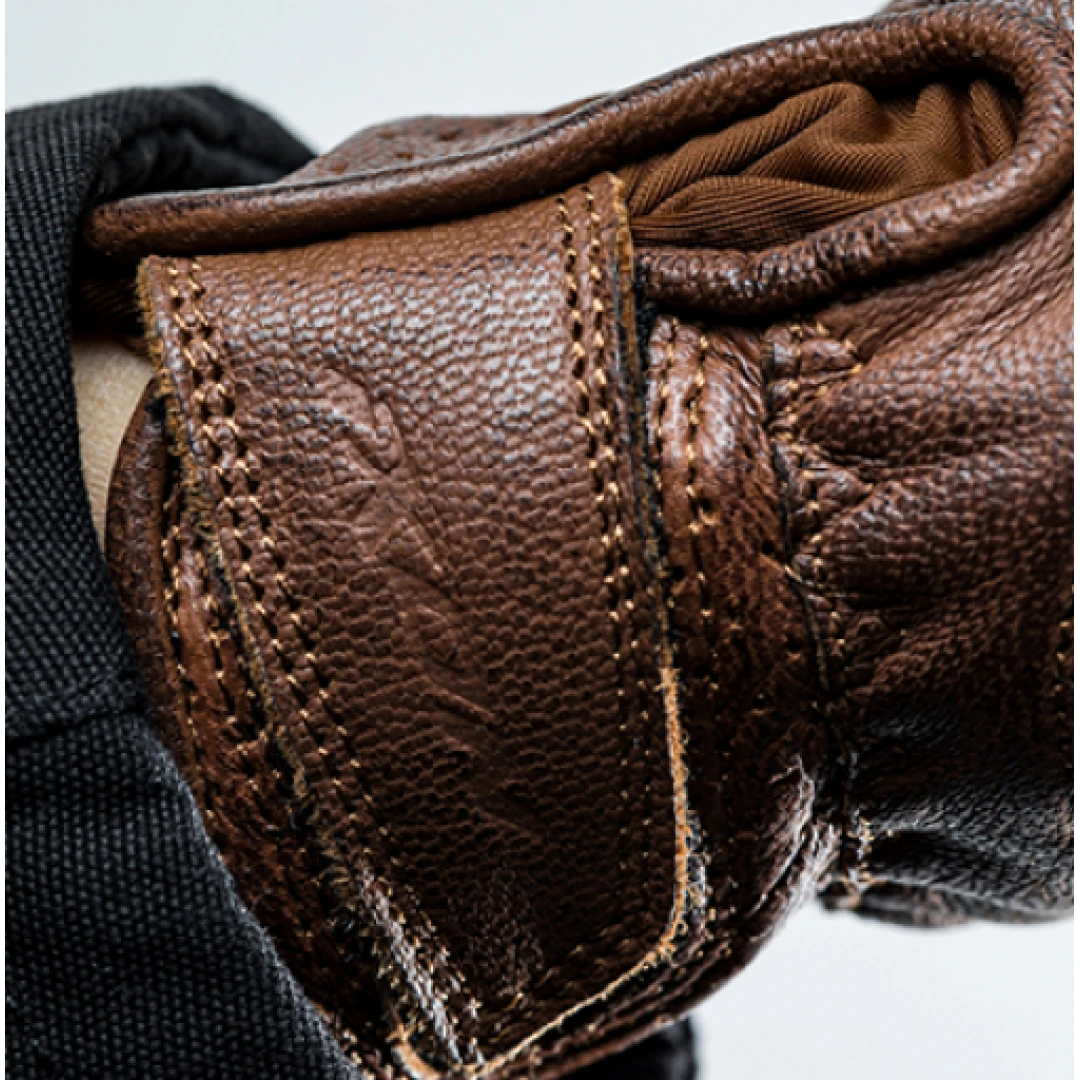 Fabricate din piele de capra, aceste manusi au un aer retro, avand un design minimalist. Logo-ul producatorului nu este aplicat, ci stantat pe manusi, pentru a pastra identitatea retro si clasica a produsului.