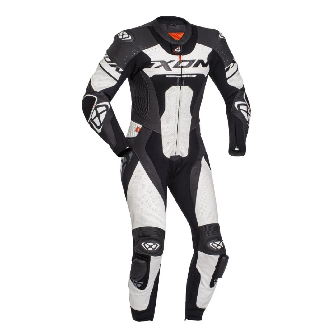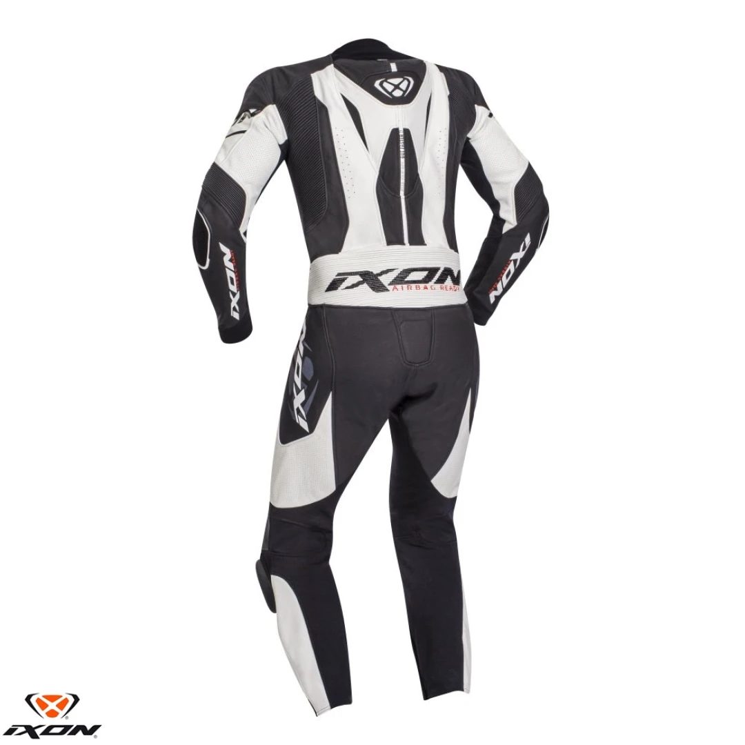 Costum (combinezon) motociclete barbati piele Ixon vara model Jackal culoare: negru/alb