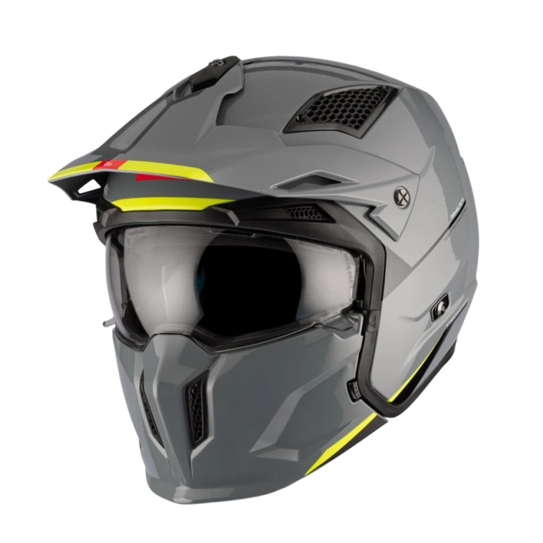 Casca MT Streetfighter SV S A22 gri lucios (ochelari soare integrati) - masca (protectie) barbie si cozoroc detasabile - omologare noua ECE 22.06