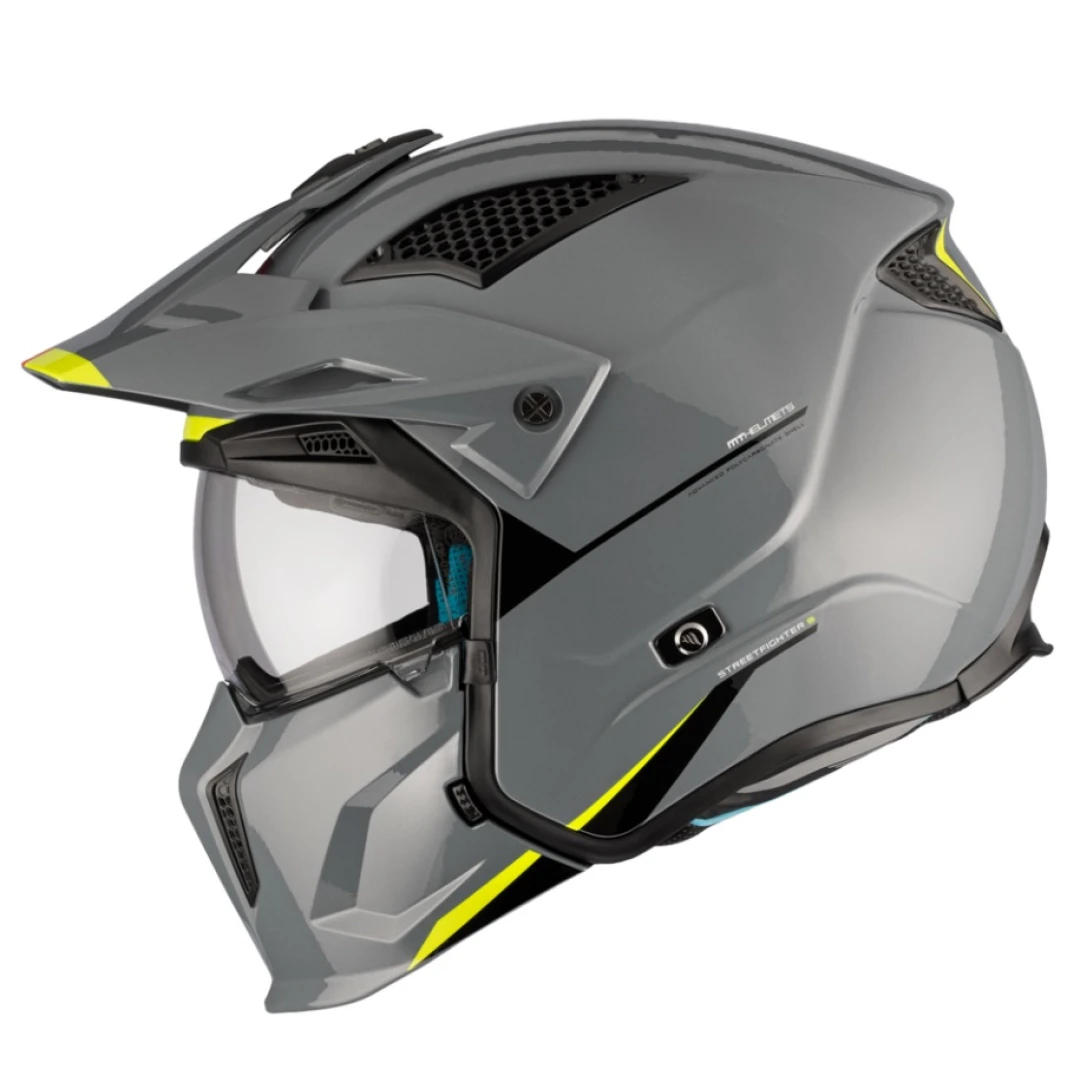 Casca MT Streetfighter SV S A22 gri lucios (ochelari soare integrati) - masca (protectie) barbie si cozoroc detasabile - omologare noua ECE 22.06 - Gri lucios , L (59/60cm)