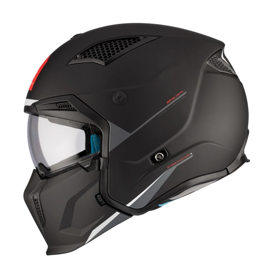 Casca MT Streetfighter SV S A1 negru mat (ochelari soare integrati) - masca (protectie) barbie si cozoroc detasabile - omologare noua ECE 22.06