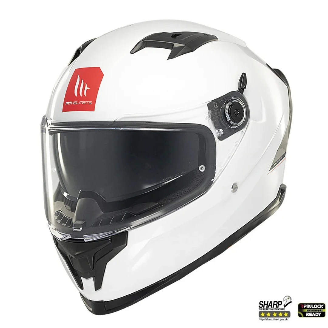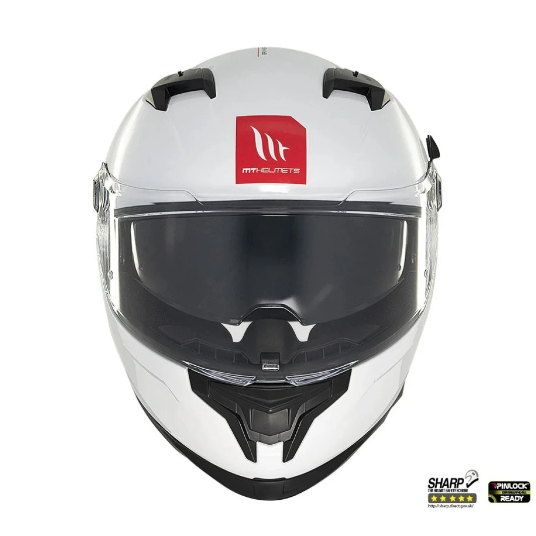 Casca integrala MT Braker SV A0 alb lucios (ochelari soare integrati) - tip viziera: MT-V-28B - DKS435 - punctaj maxim SHARP Test - 5 stele