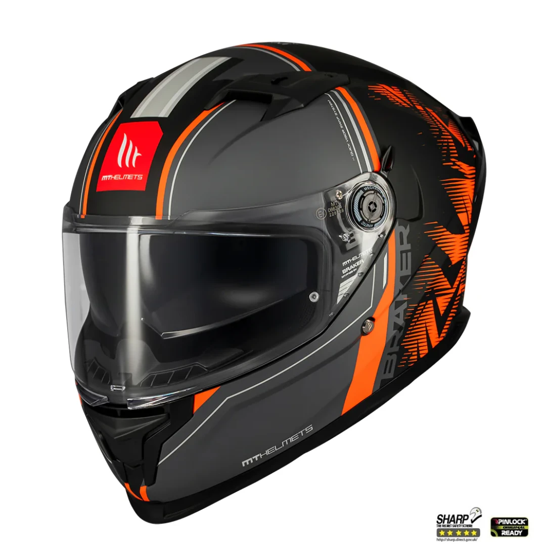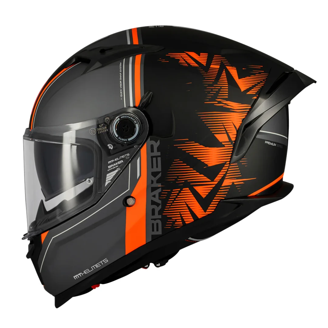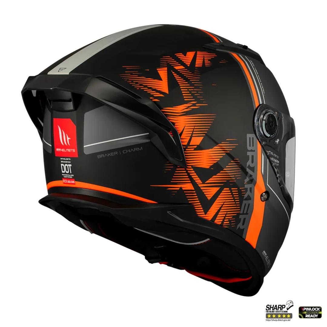 Casca integrala MT Braker SV Charm B4 negru/portocaliu mat (ochelari soare integrati) - tip viziera: MT-V-28B - DKS435 - punctaj maxim SHARP Test - 5 stele