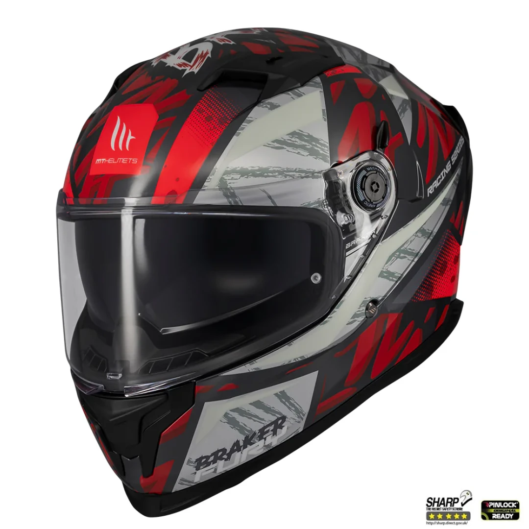 Casca integrala MT Braker SV Fury C5 rosu lucios (ochelari soare integrati) - tip viziera: MT-V-28B - DKS435 - punctaj maxim SHARP Test - 5 stele