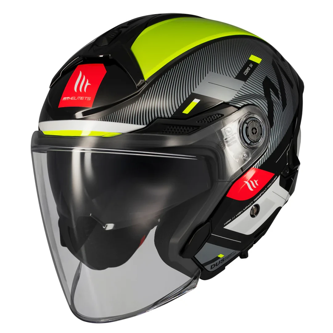 Casca open face motociclete MT Cosmo SV Silence B3 galben fluor lucios (ochelari soare integrati) - tip viziera: MT-V-37