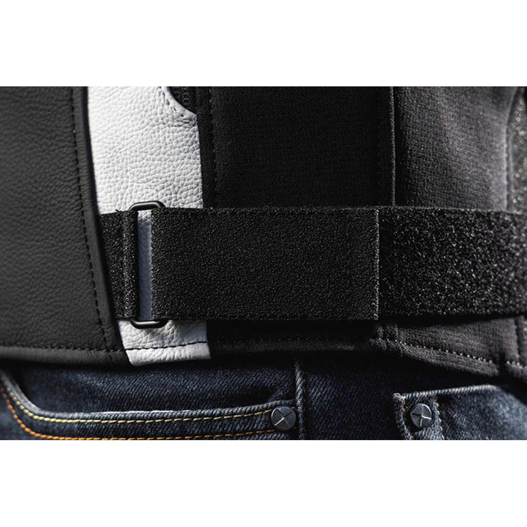 Fabricata prin tehnologia 4-way stretch fabric la nivelul gatului, in partea frontala, in laterale, la brate si maneci. suplimentar, pielea este perforata in anumite locuri, pentru o imbunatatire a circulatiei aerului (air flow).