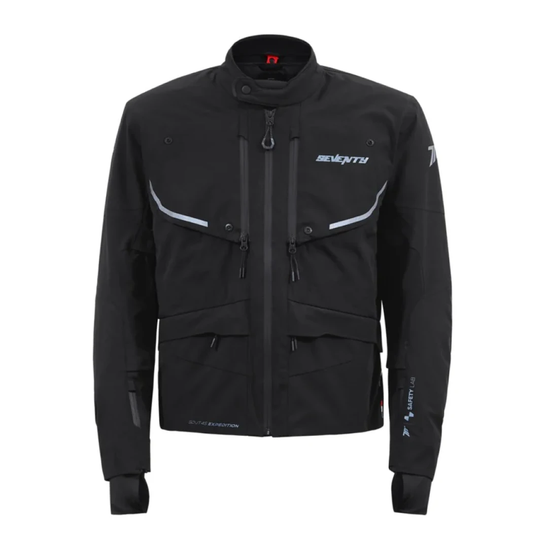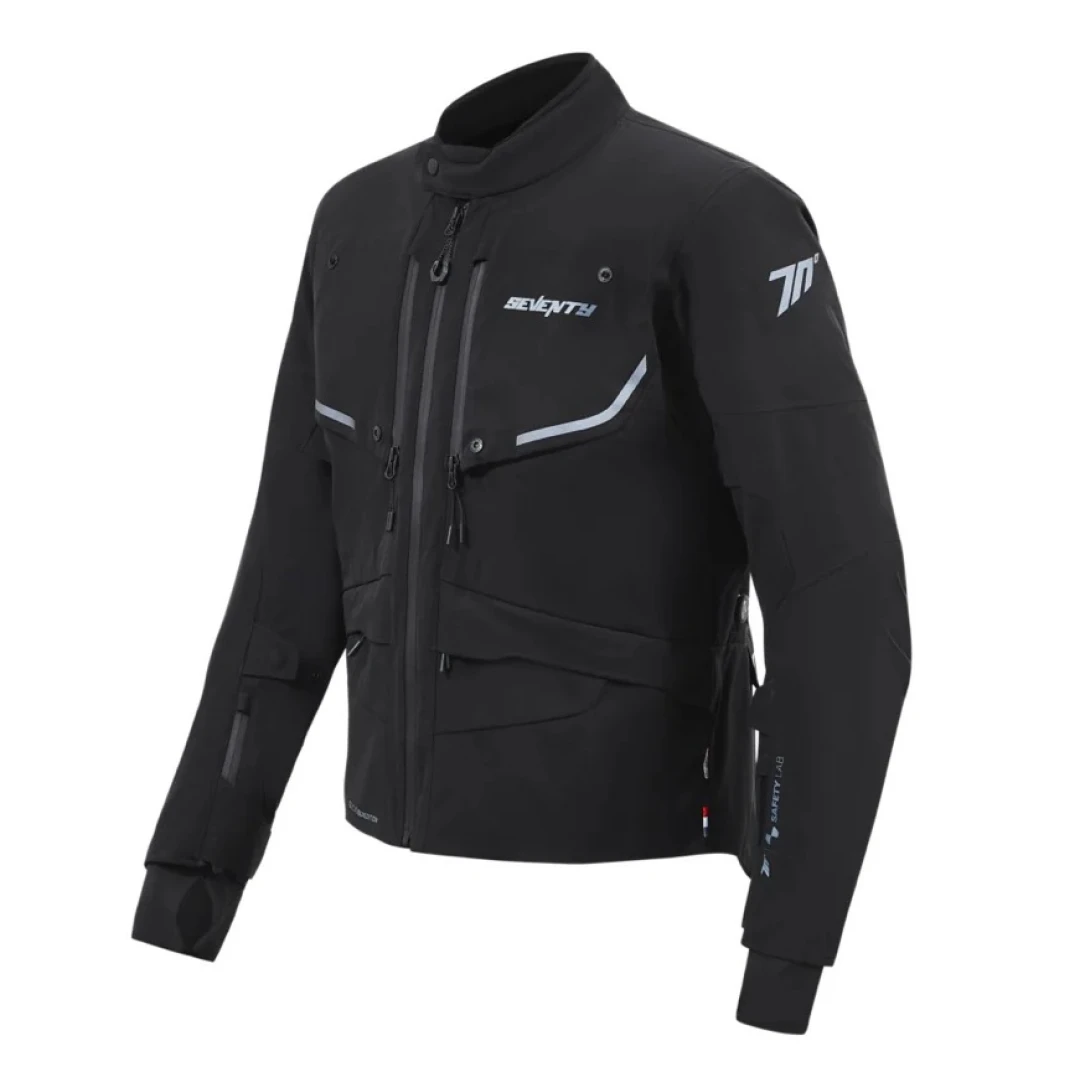 Jacheta Seventy 70 SD-JT45 Expedition este concepută pentru cei mai exigenți motocicliști, oferind protecție și confort în orice vreme și teren. Fabricată dintr-un material laminat durabil, de înaltă rezistență, această jachetă încorporează tehnologiile avansate Dry70, Warm70 și Atop, oferind impermeabilitate, izolație termică și o potrivire personalizată pentru un confort de neegalat pe călătoriile lungi. Orificiile de ventilație magnetice la nivelul pieptului și ajustările magnetice ale bicepșilor permit reglarea rapidă și eficientă a temperaturii. Jacheta dispune de protecții Windflex de Nivel 2 la nivelul coatelor și umeri, precum și de un buzunar pentru o protecție opțională pentru spate. Detaliile din neopren de pe guler și zonele reflectorizante sporesc siguranța în condiții de lumină slabă.