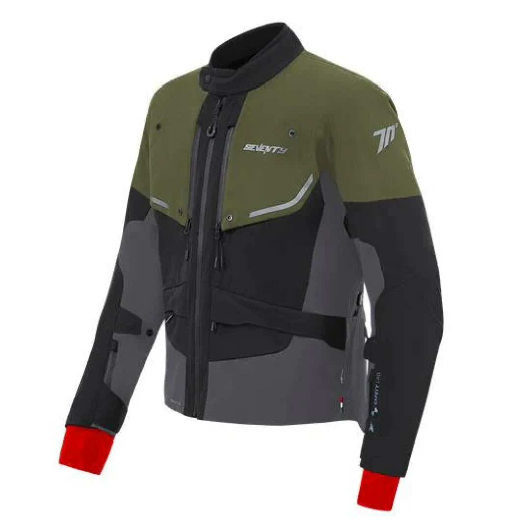 Jacheta Seventy 70 SD-JT45 Expedition este concepută pentru cei mai exigenți motocicliști, oferind protecție și confort în orice vreme și teren. Fabricată dintr-un material laminat durabil, de înaltă rezistență, această jachetă încorporează tehnologiile avansate Dry70, Warm70 și Atop, oferind impermeabilitate, izolație termică și o potrivire personalizată pentru un confort de neegalat pe călătoriile lungi. Orificiile de ventilație magnetice la nivelul pieptului și ajustările magnetice ale bicepșilor permit reglarea rapidă și eficientă a temperaturii. Jacheta dispune de protecții Windflex de Nivel 2 la nivelul coatelor și umeri, precum și de un buzunar pentru o protecție opțională pentru spate. Detaliile din neopren de pe guler și zonele reflectorizante sporesc siguranța în condiții de lumină slabă.