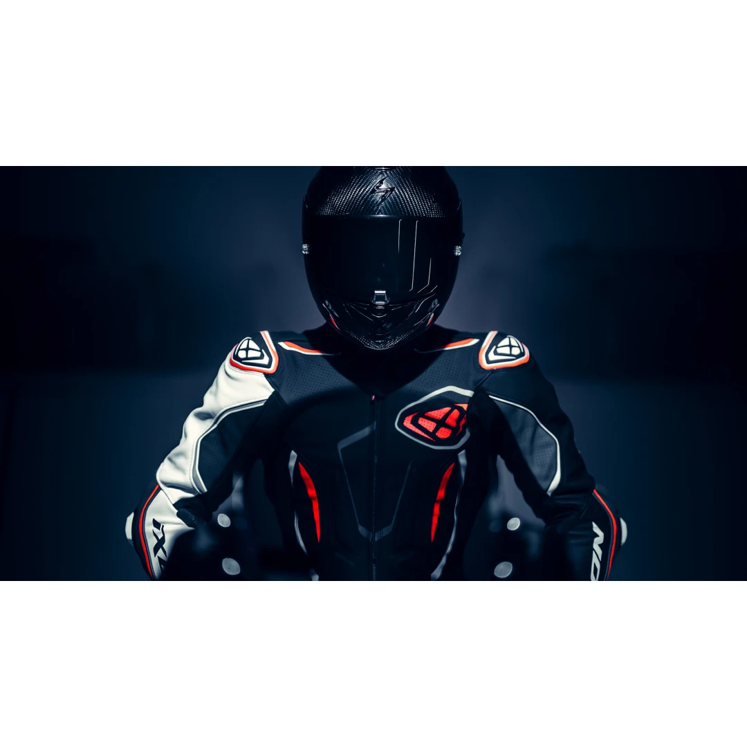 • Accesorii: Noi ODA-uri din polimer cu densitate dublă la umeri și genunchi – Noi slidere pentru coate IX-23-ESLIDER, detașabile și înlocuibile, derivate din MotoGP – Glisoare pentru genunchi RACE 2.0, detașabile, înlocuibile și reglabile, utilizate în MotoGP – Nouă cocoașă aerodinamică utilizată în MotoGP – Sistem de atașare a vezicii de hidratare de 0,5 l – Panouri antiderapante pe tibie pentru o aderență mai bună în bocanci – Vestă din plasă detașabilă – Curele pentru glezne pentru atașarea picioarelor la ghidon.