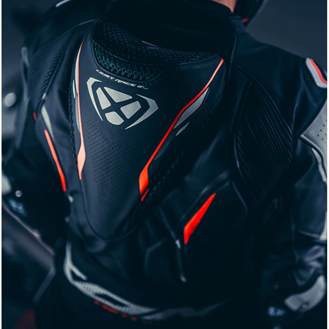 • Accesorii: Noi ODA-uri din polimer cu densitate dublă la umeri și genunchi – Noi slidere pentru coate IX-23-ESLIDER, detașabile și înlocuibile, derivate din MotoGP – Glisoare pentru genunchi RACE 2.0, detașabile, înlocuibile și reglabile, utilizate în MotoGP – Nouă cocoașă aerodinamică utilizată în MotoGP – Sistem de atașare a vezicii de hidratare de 0,5 l – Panouri antiderapante pe tibie pentru o aderență mai bună în bocanci – Vestă din plasă detașabilă – Curele pentru glezne pentru atașarea picioarelor la ghidon.