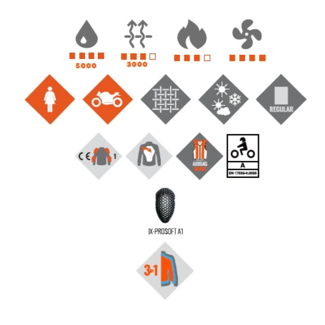 geaca este e prevazuta cu buzunar pentru protectie spate (protectia spate nu este inclusa, se achizitioneaza separat); protectia spate se comanda separat;