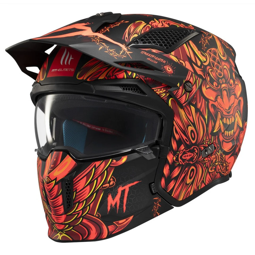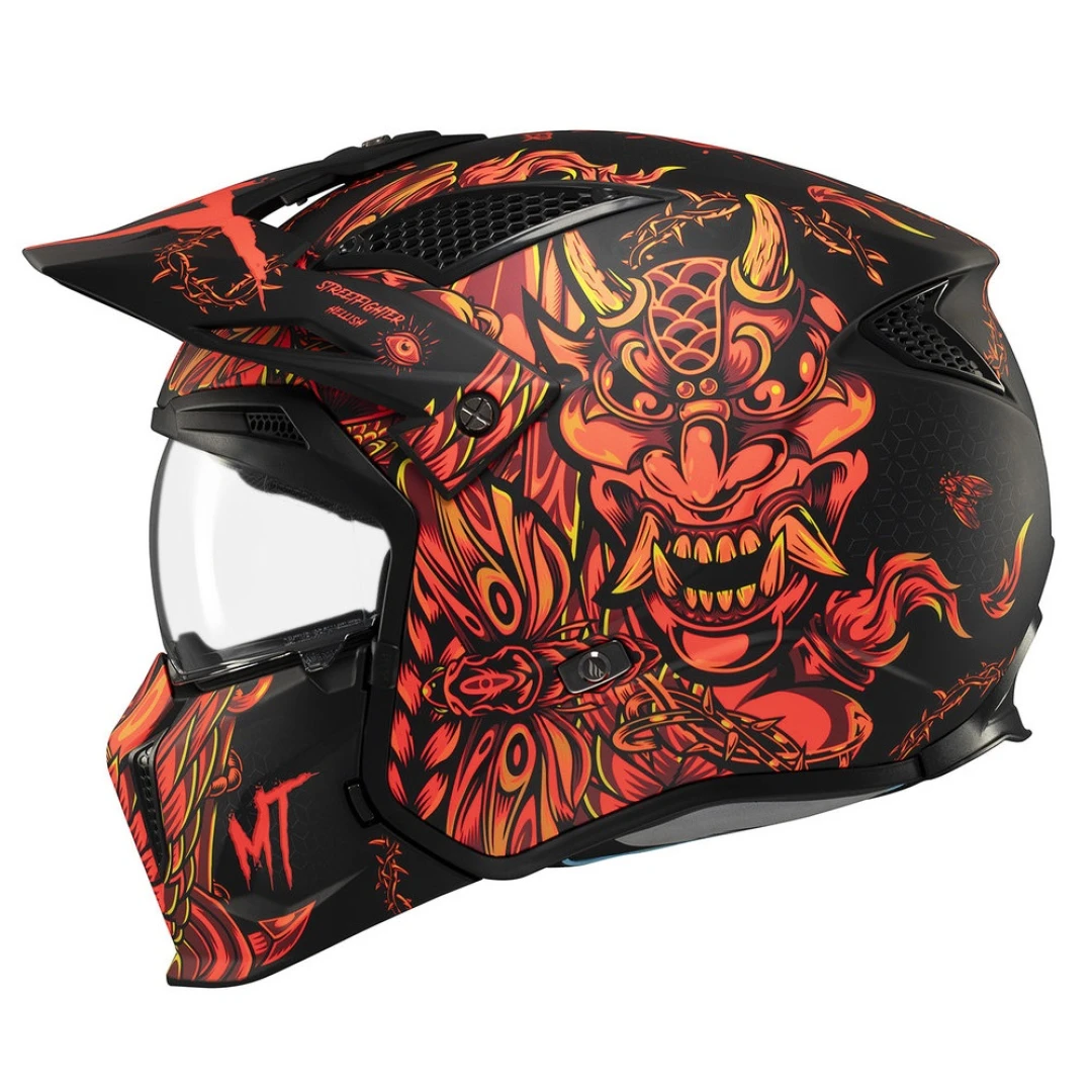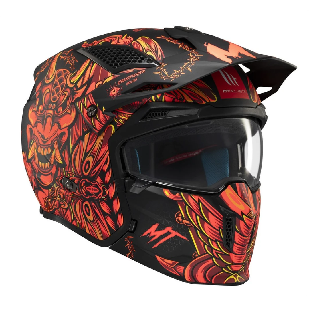 Casca MT Streetfighter SV S B5 Hellish rosu mat (ochelari soare integrati) - masca (protectie) barbie si cozoroc detasabile - omologare noua ECE 22.06