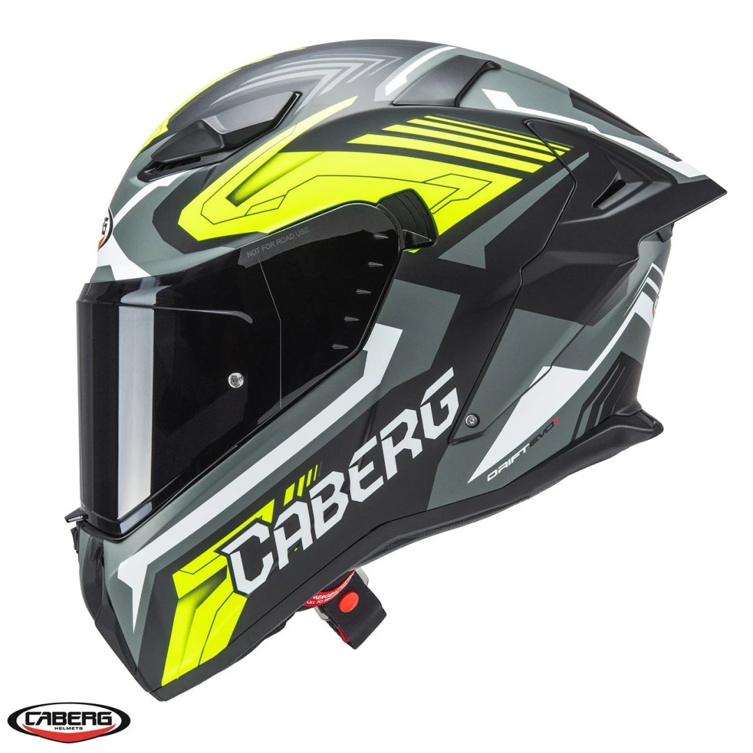 • aceasta casca este rezultatul experientei acumulate de-a lungul anilor al departamentului racing al producatorului italian Caberg, precum si al pilotilor ce poarta modelul Drift Evo SV in multe campionate de motociclism viteza;